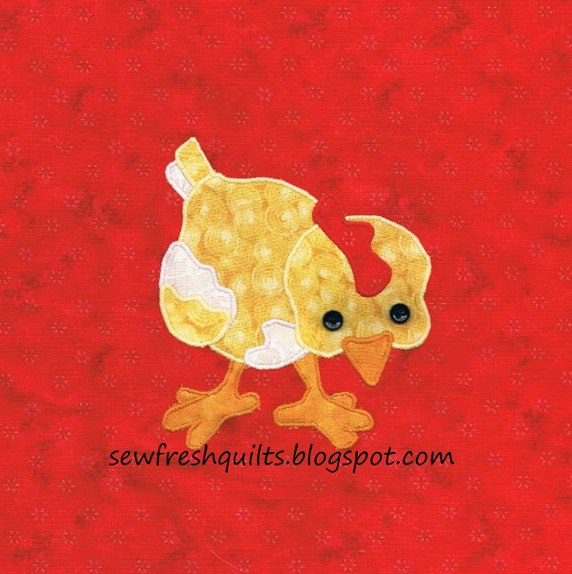 And I am making a little place mat from the two leftover chicks and feather blocks....
