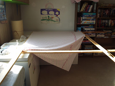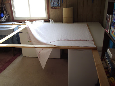 Which I washed and dried, cut and seamed, and through up on the frame I use to baste my quilts.