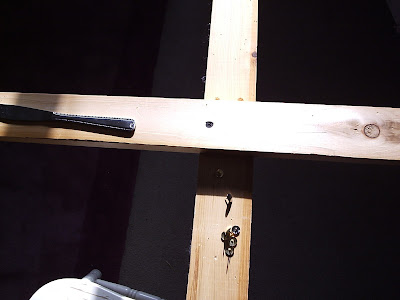 Remove the screws and store the wooden rails out of the way.