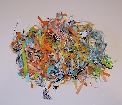 What to do with this mess now? I have given it a little thought... And am setting this outside, beneath the cedar trees. The robins have returned. I seen them yesterday while I was dutifully doing the dishes. And I am confident they will make good use of these bits, building their nests.