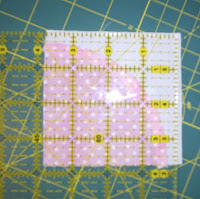 I made a template and did a few practice pieces. But I will be the first one to admit, there is rarely anything scant about my 1/4" anything. So I made a slightly larger template because I would prefer to be able to trim my blocks after sewing - ensuring they are exactly 5 1/2" and square - before sewing them into a row.