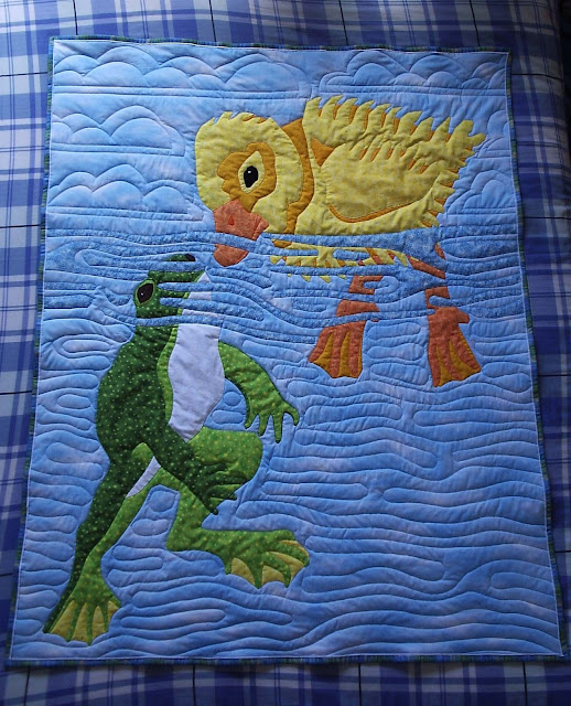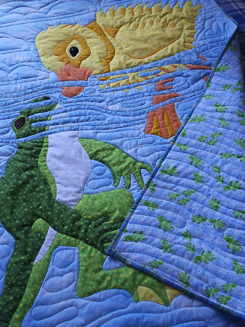 Lucia's duck and frog baby quilt is done! Put the binding on this morning in time to link up for my Friday finish.
