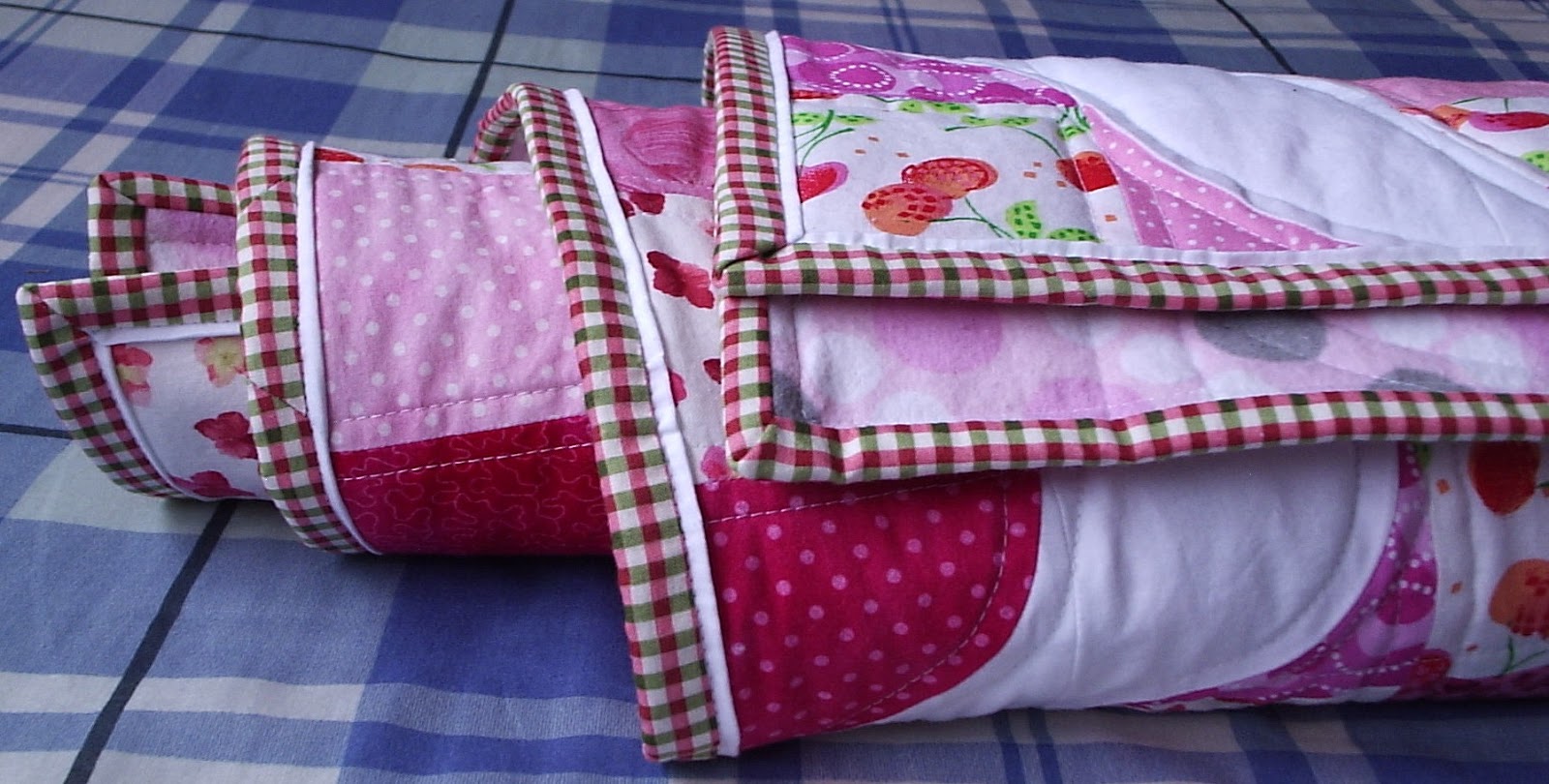 If there was any one fabric color I had collected in abundance, it was pinks. Some dark, some plain, some polka dotted. Some with a touch of green.