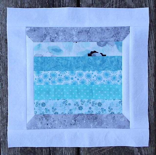 section together, then sew them onto the 8.5” Feature fabric squares. Press all seams open.