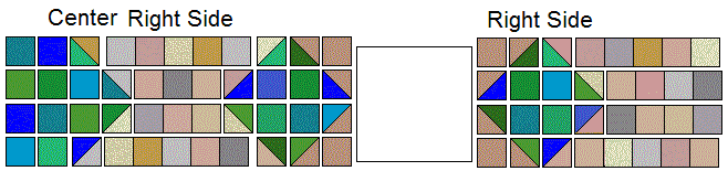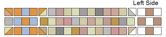 will be sewn together in each section, then sewn to the feature fabric. Sew each of the pieces in each row