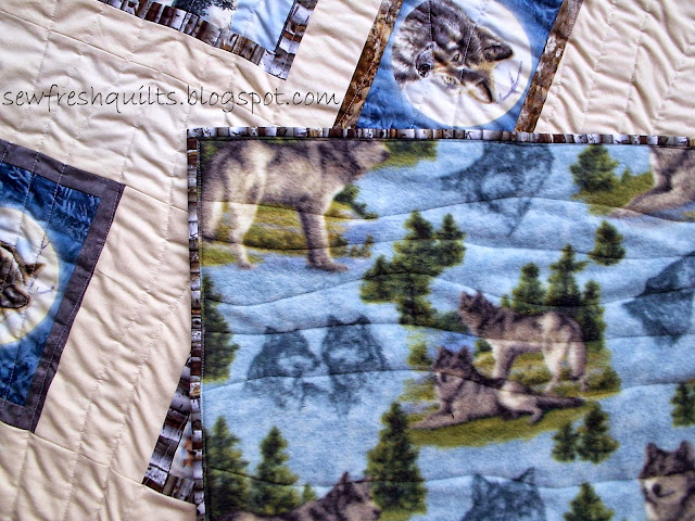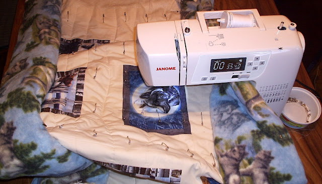 With the quilt back facing up, sew the border on. Begin at the 1/4" mark, sew a few stitches and carefully backstitch to the mark. Sew until you reach the opposite 1/4" mark and backstitch again to secure the ends.