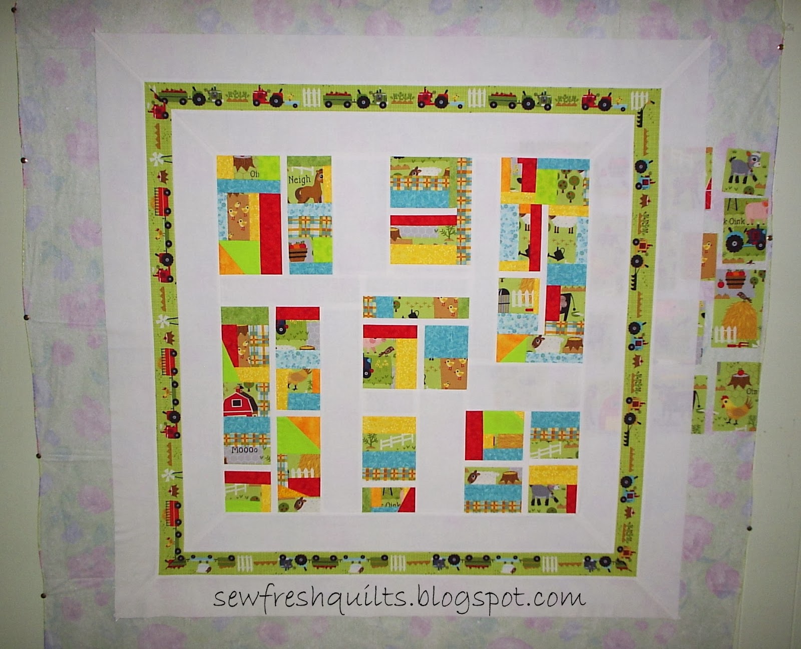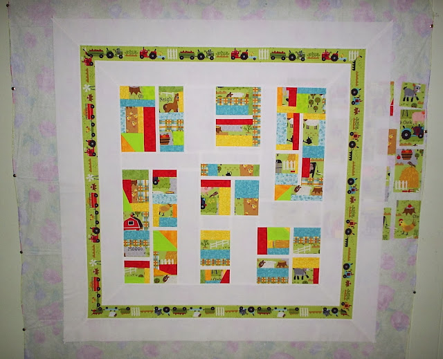 I used width of fabric strips and sewed the white, feature and white border strips together for all four sides.