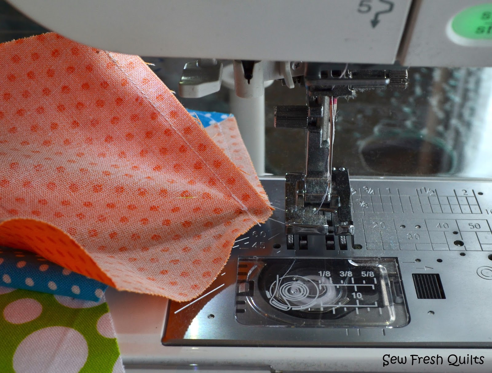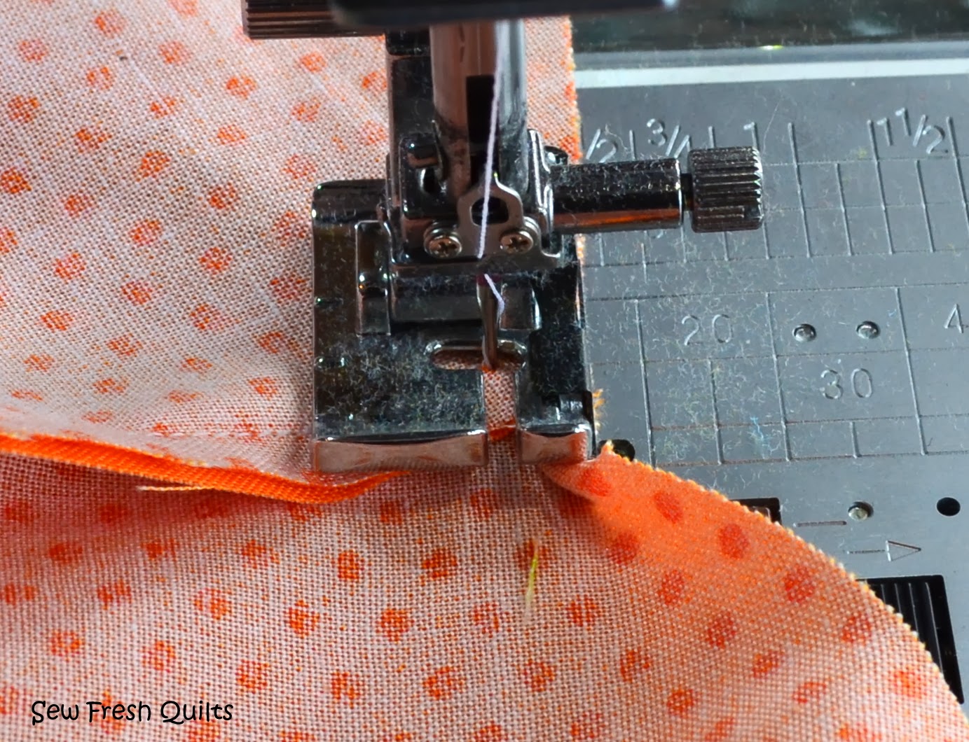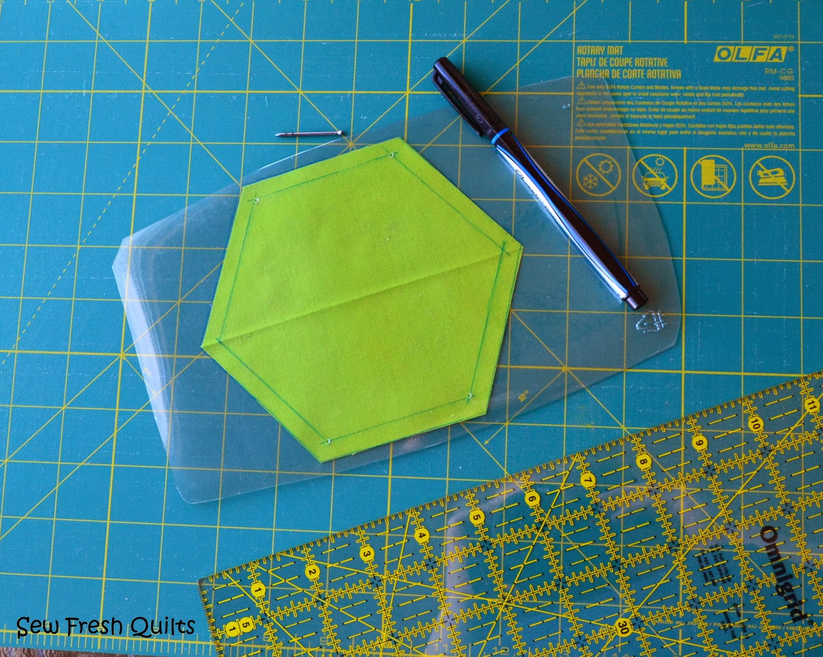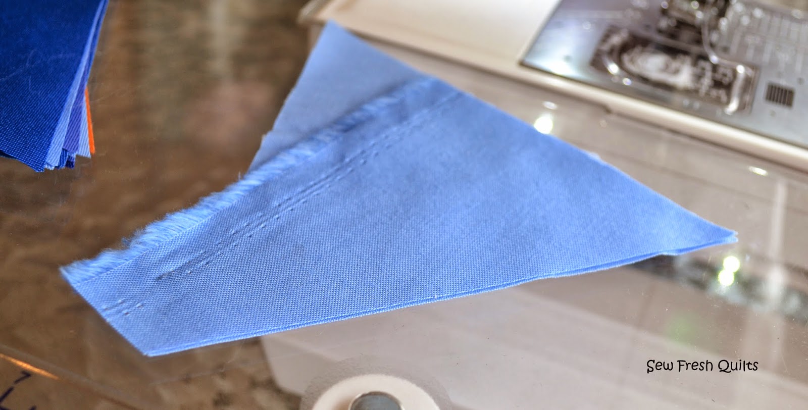 you will still be cutting through two layers of fabric at one time. Place the 60 degree line of your acrylic ruler on the bottom edge of your fabric