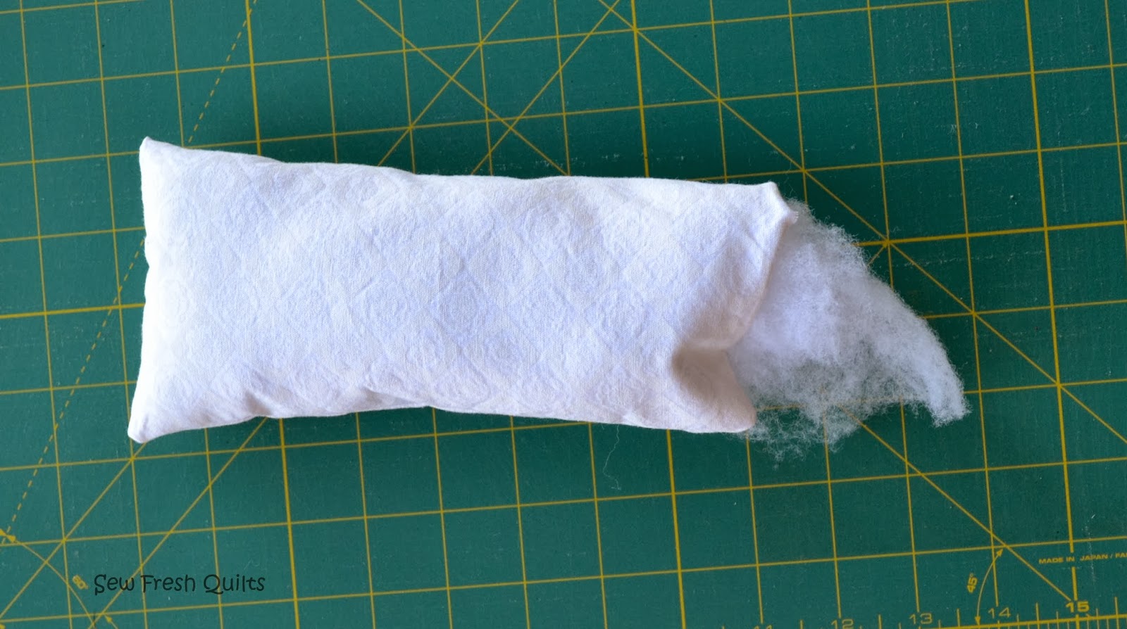 Stuff the pillow with polyester batting.