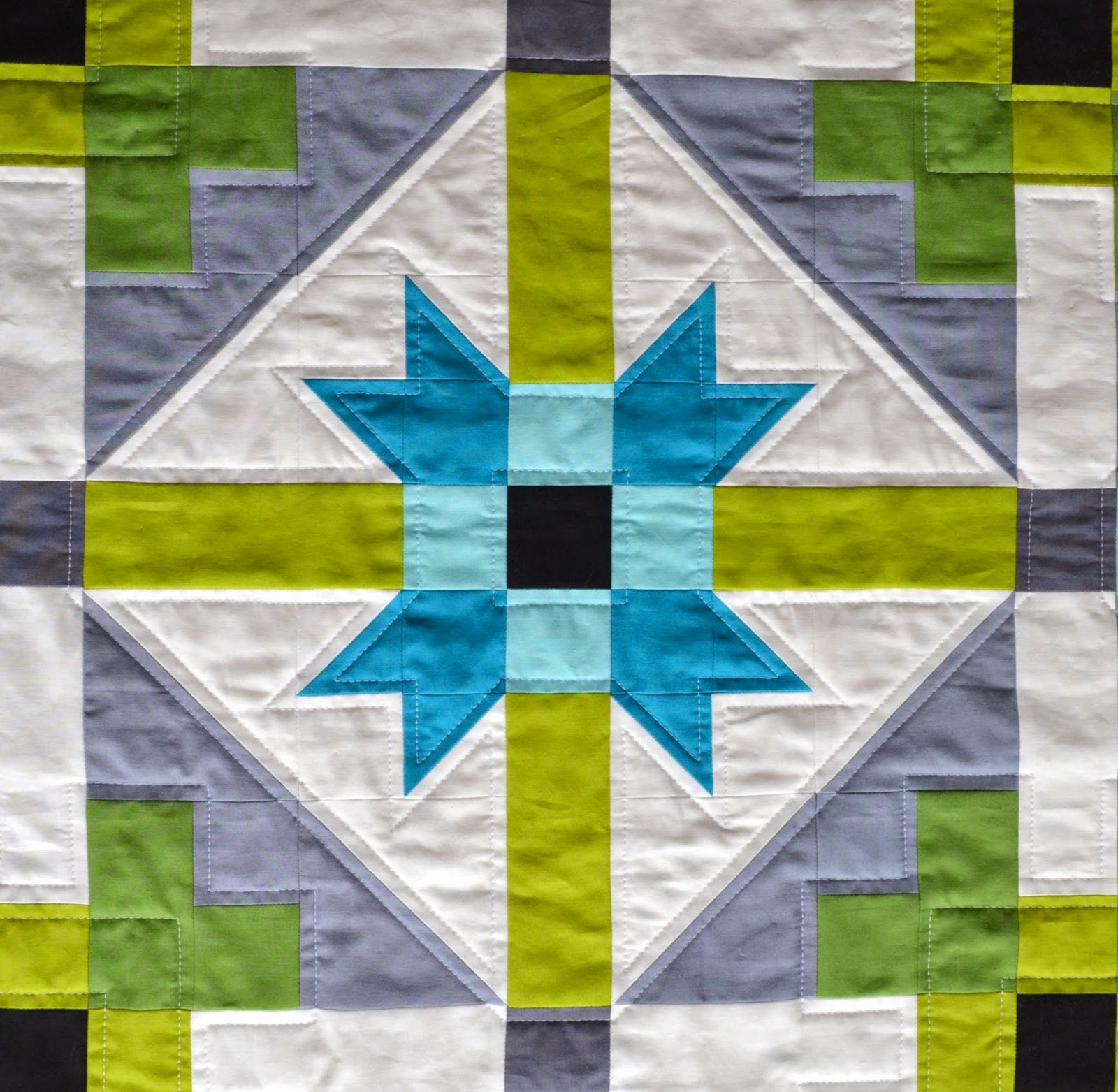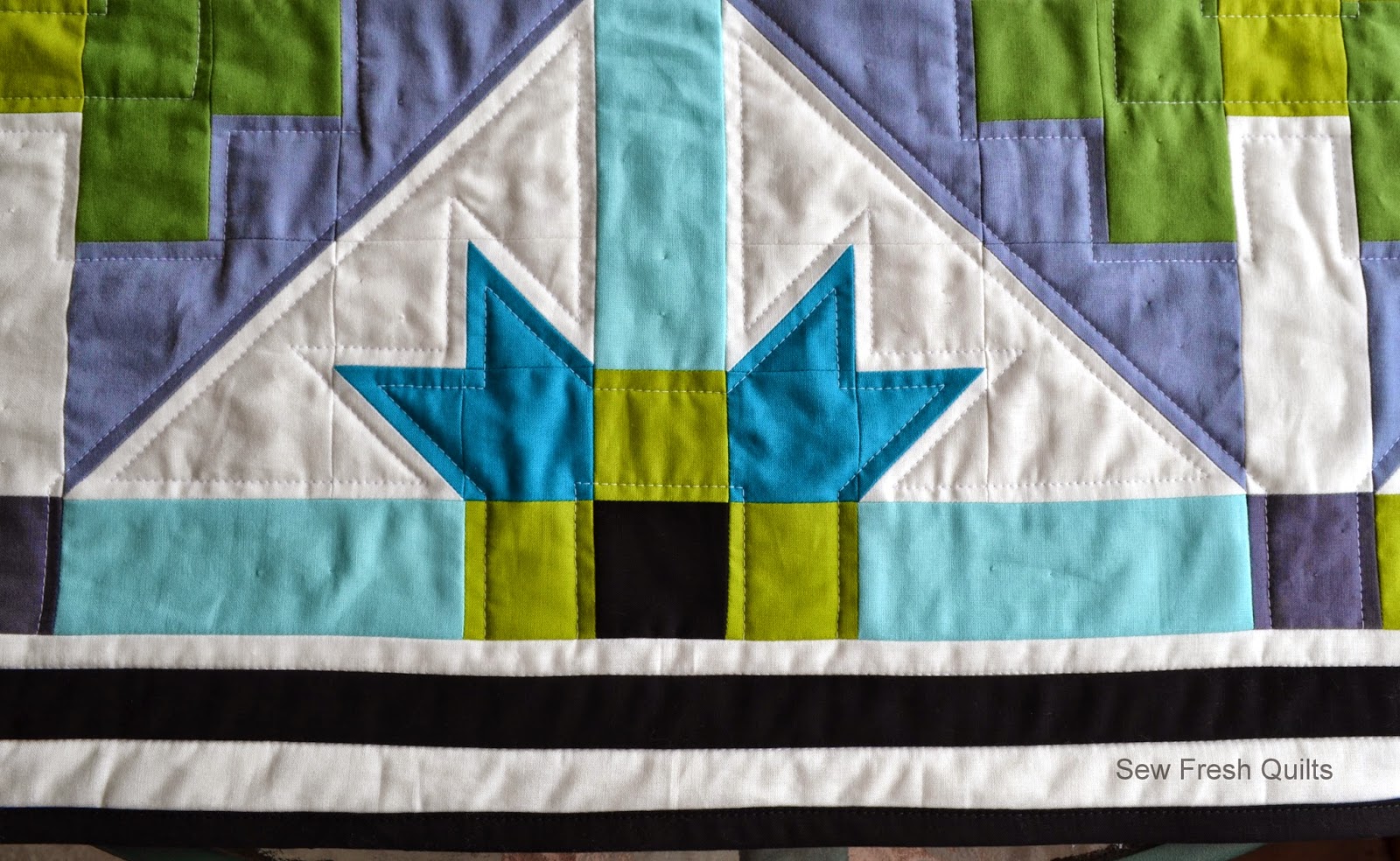 Lastly, I quilted in the ditch on each side of the black line in the borders.