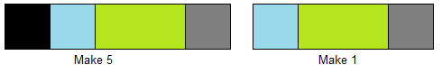 - Sew 5 Black 2.25" squares to blue end of 5 Cyan/Peapod units.