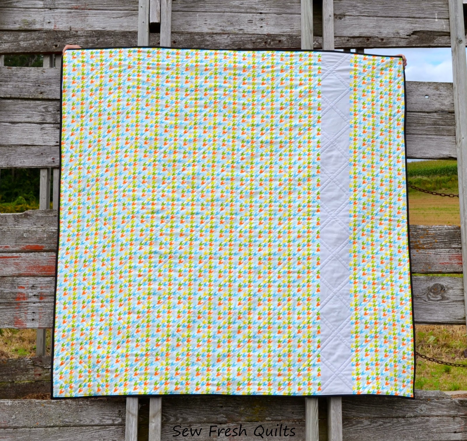 the Mixed Bag Houndstooth in Sprout with an offset strip of Kona Silver.