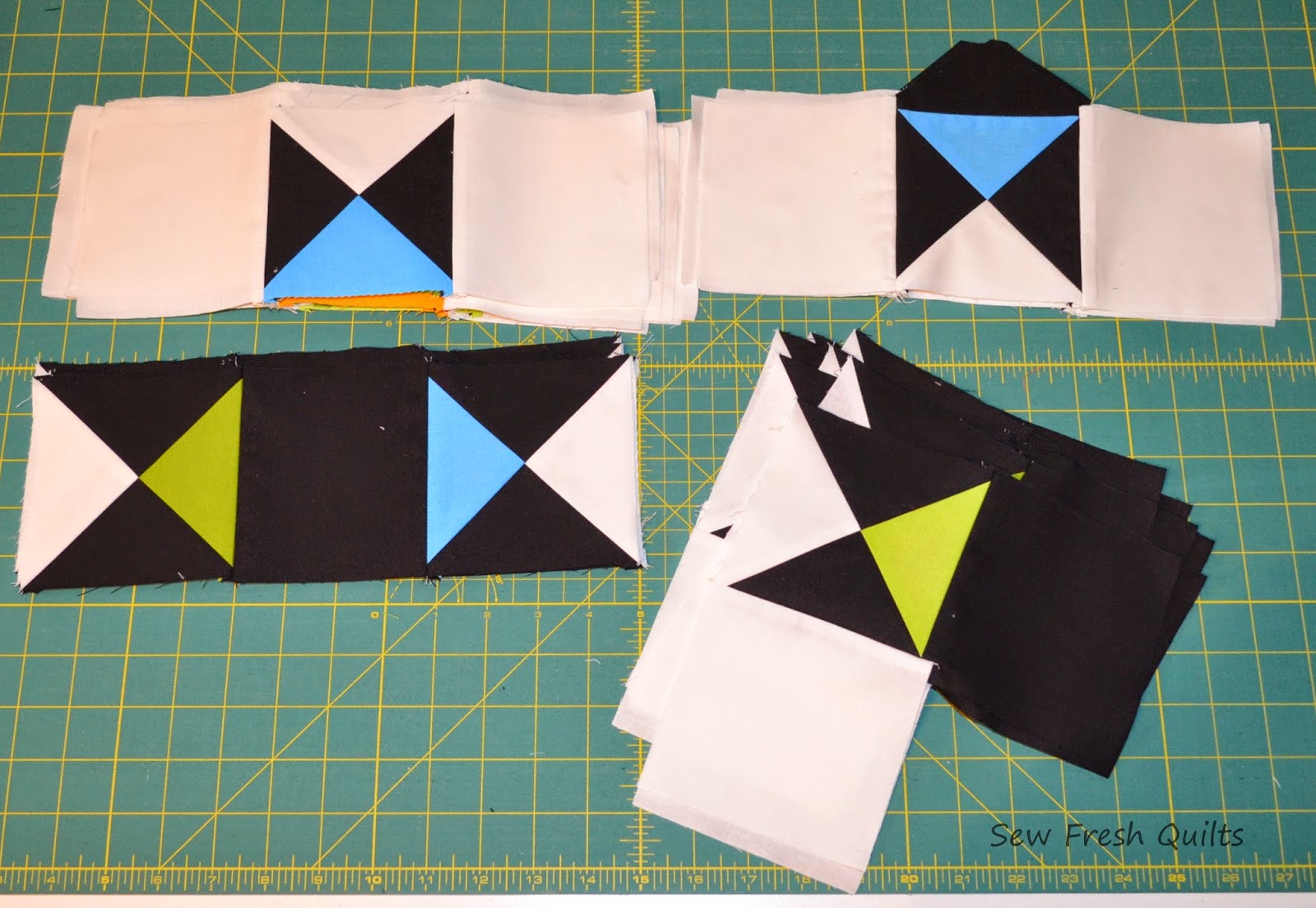 And the Ohio Star pieces as they were being stitched up.