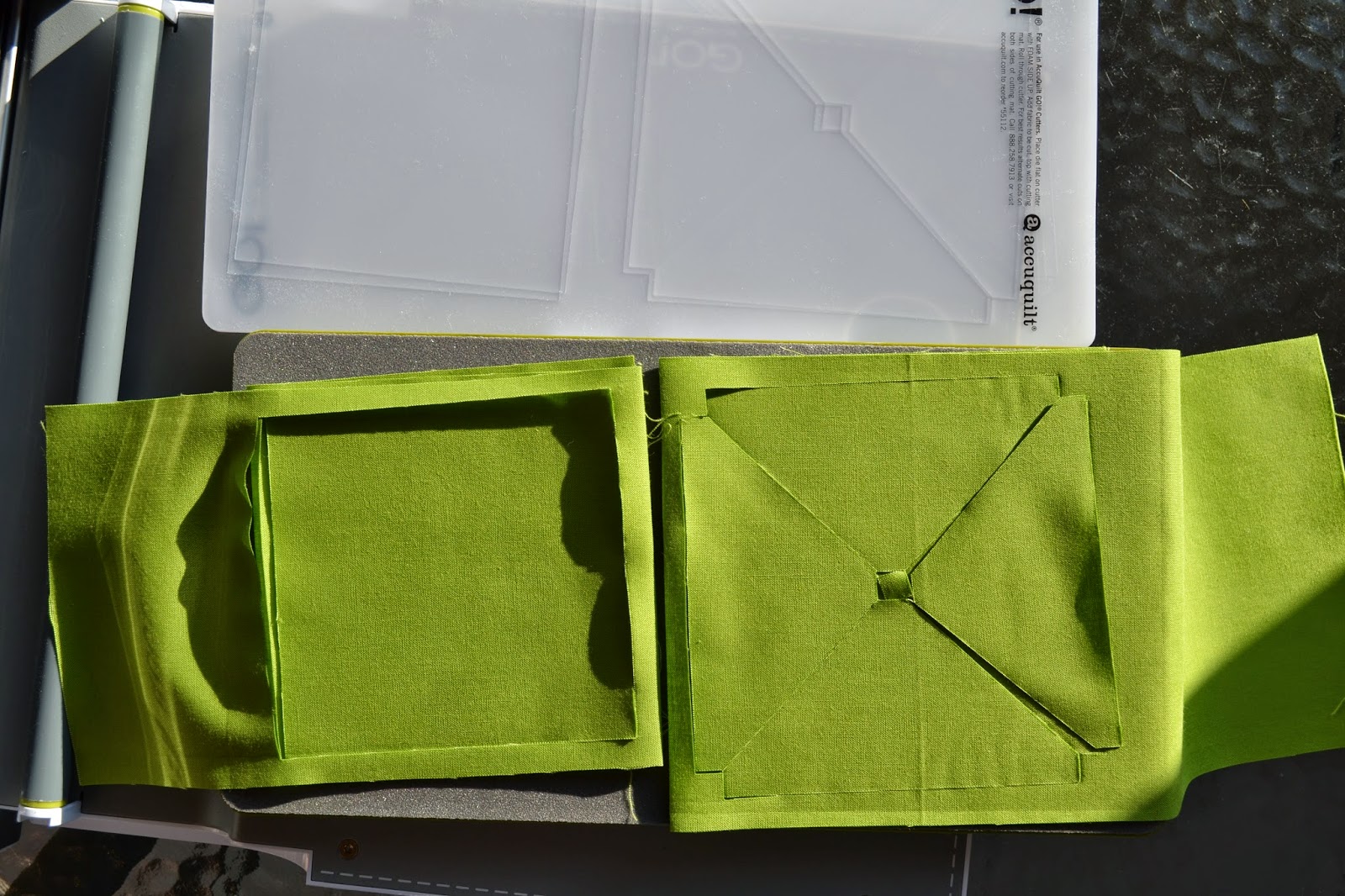 It was a sunny Saturday afternoon, perfect for quickly cutting out all the necessary pieces using my AccuQuilt GO! cutter and my new BOB die.