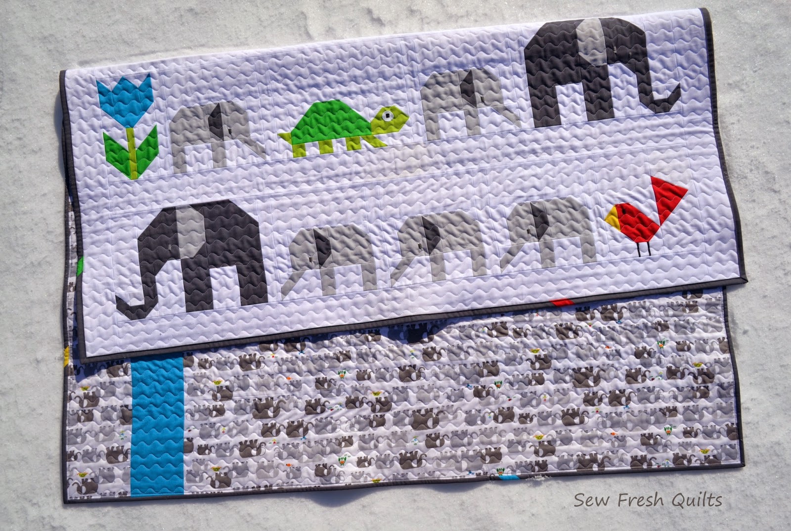 For my Elephant Parade quilt, I choose same fabrics used in the quilt top to make my little bits.