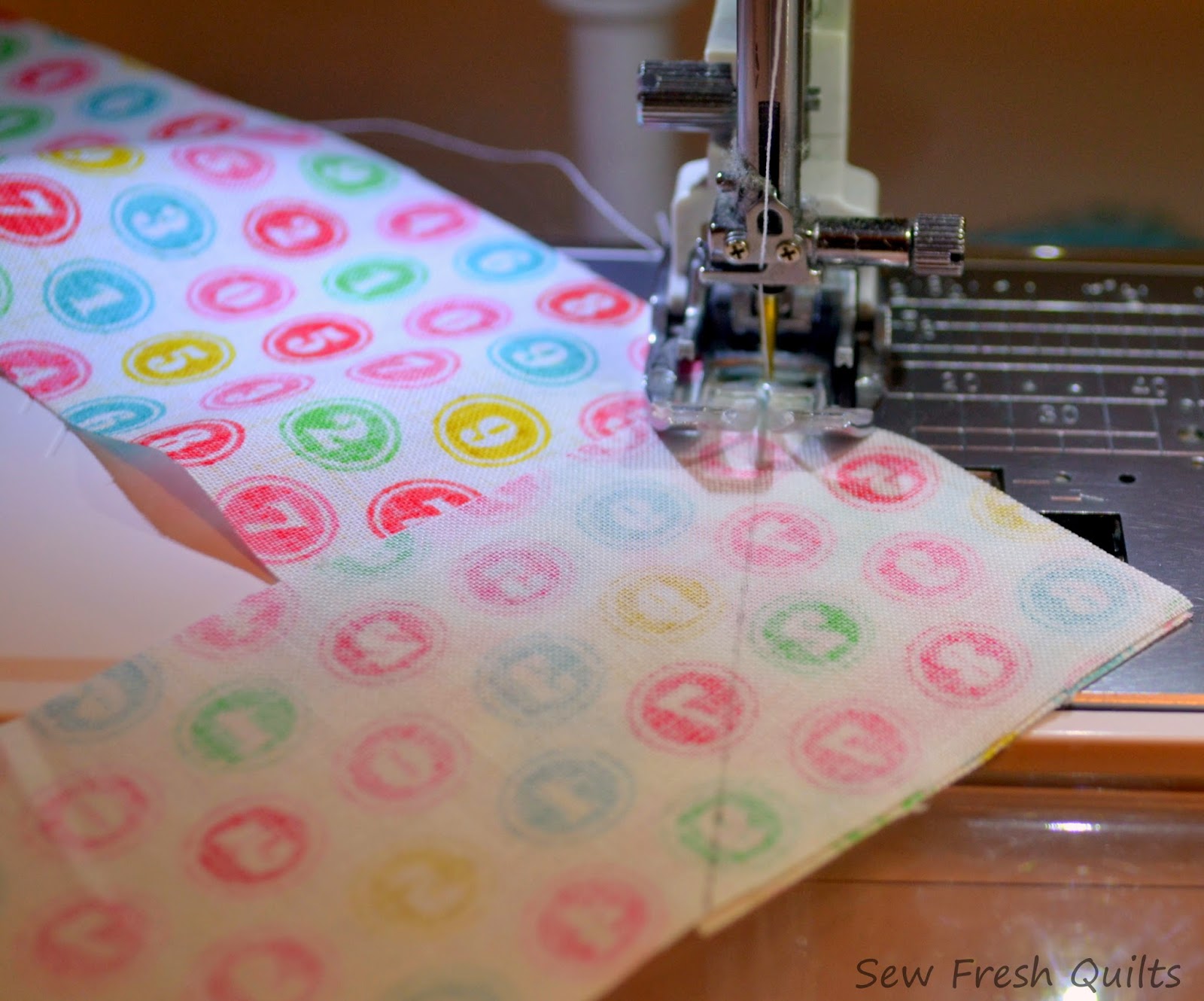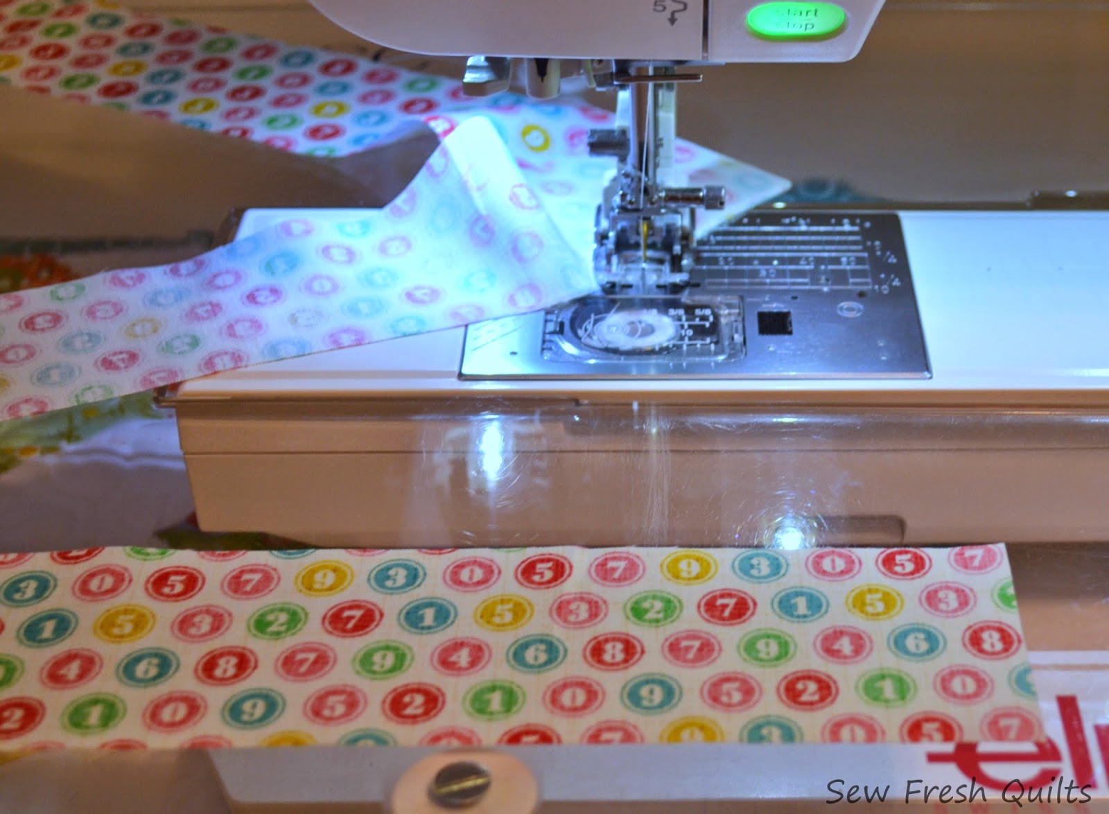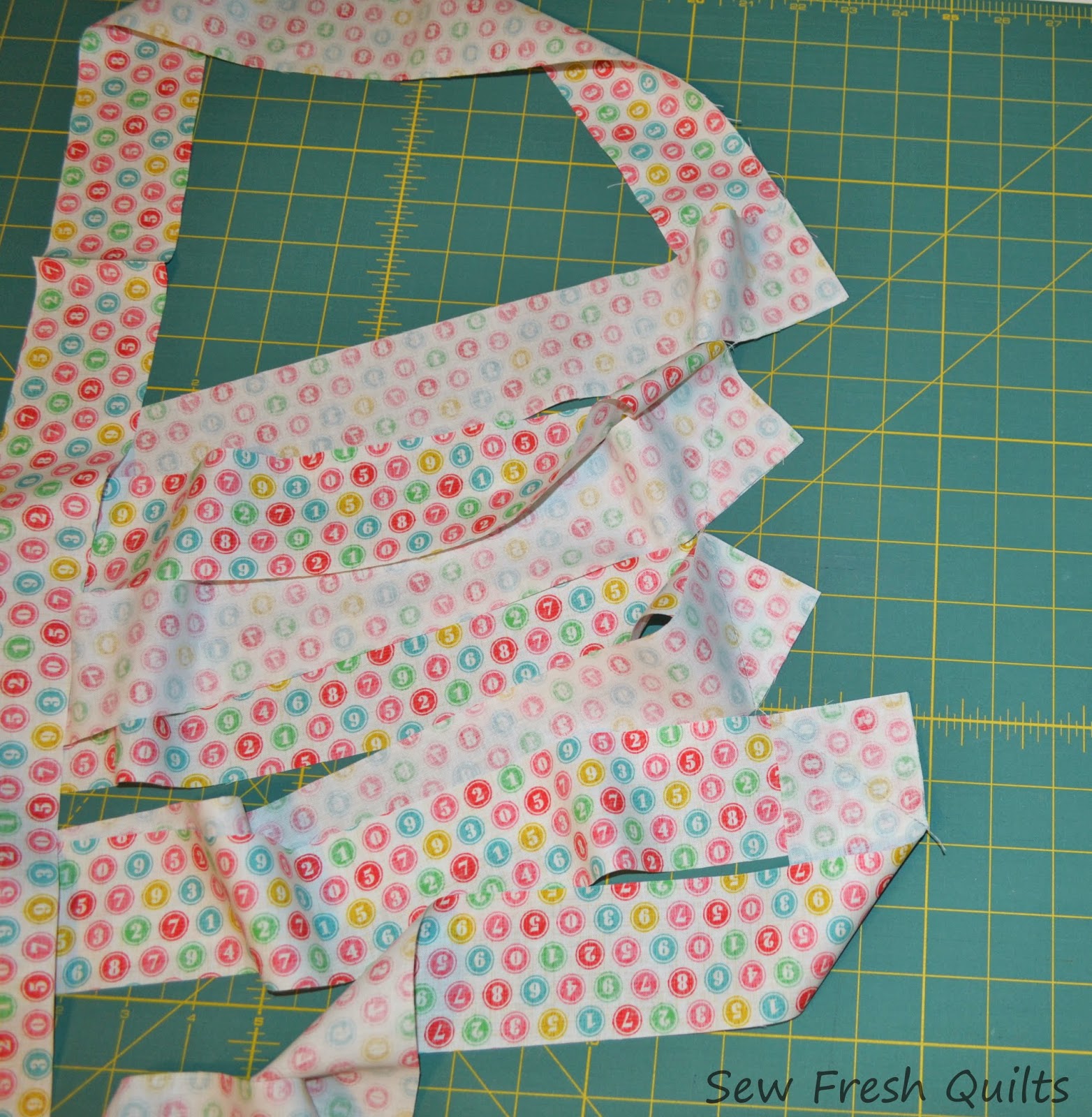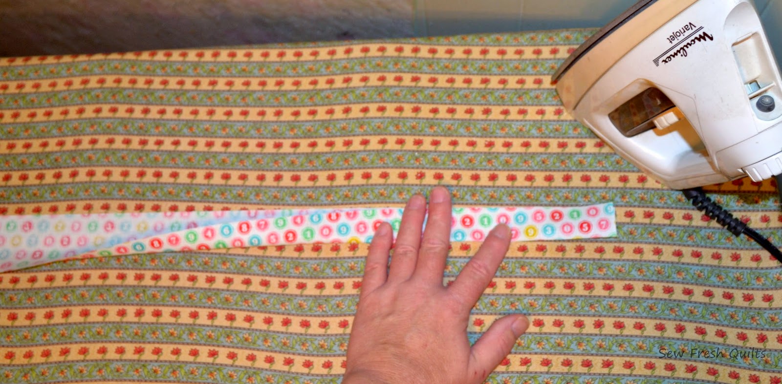 Step 10: Press the seam open. Continue alternating your remaining full length binding strips and little bits.