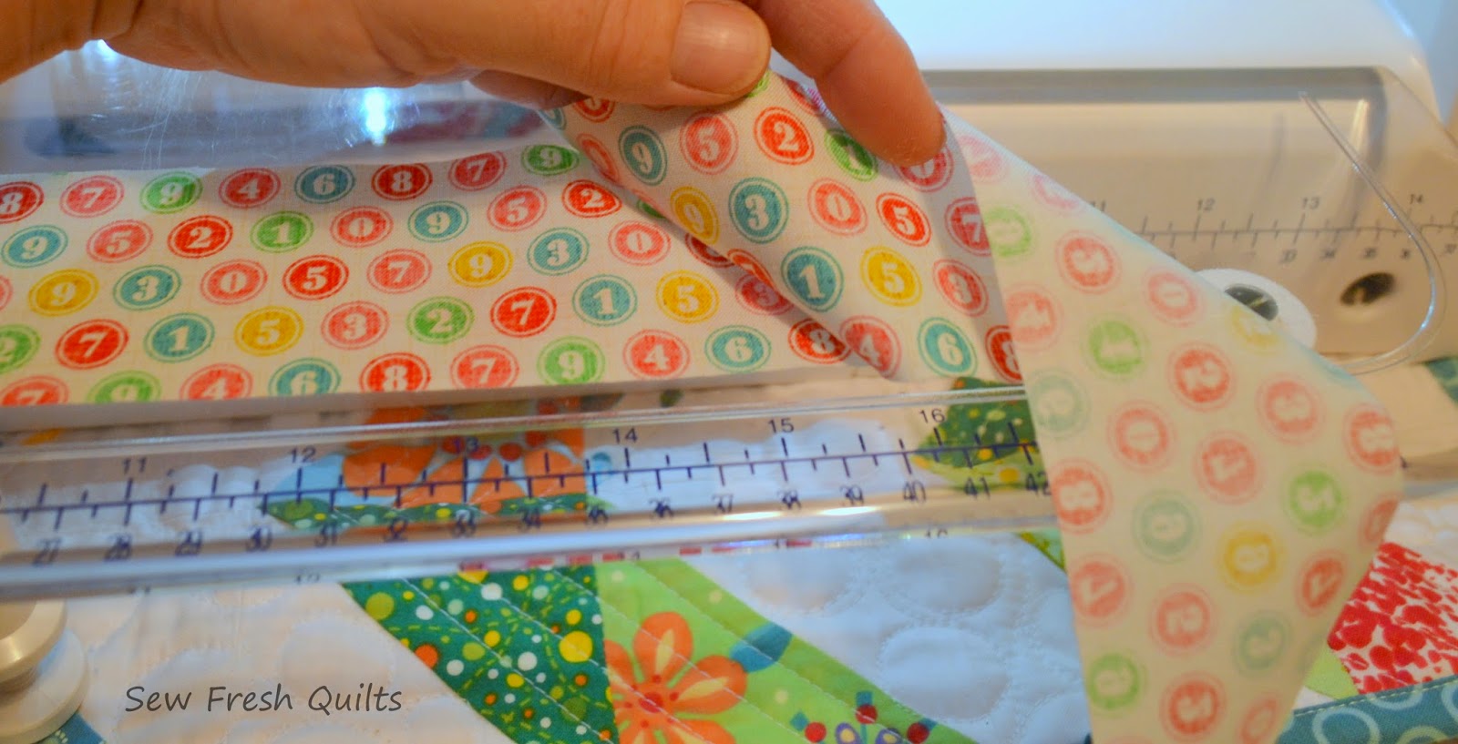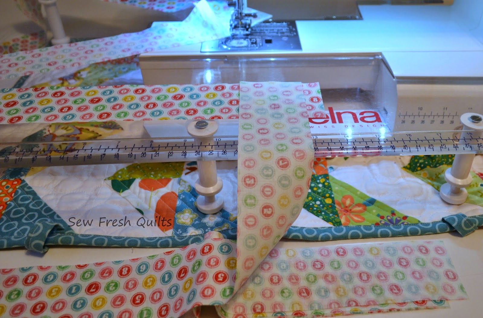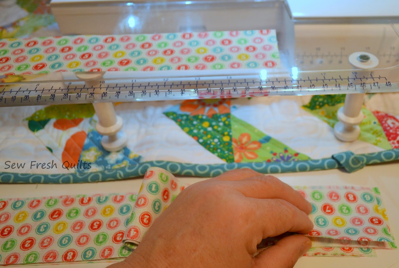 So I needed 5 width of fabric strips, cut on the crossgrain, to make enough binding for this runner.