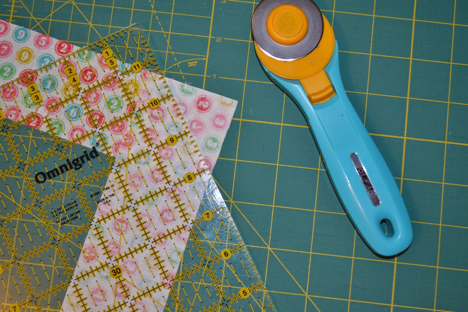 Step 3: Using your acrylic ruler and rotary cutter, trim a 1/4" seam.