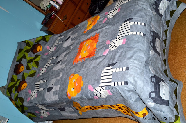 | "Jungle Friends" in TWIN Size finished at approximately 72" x 96" |