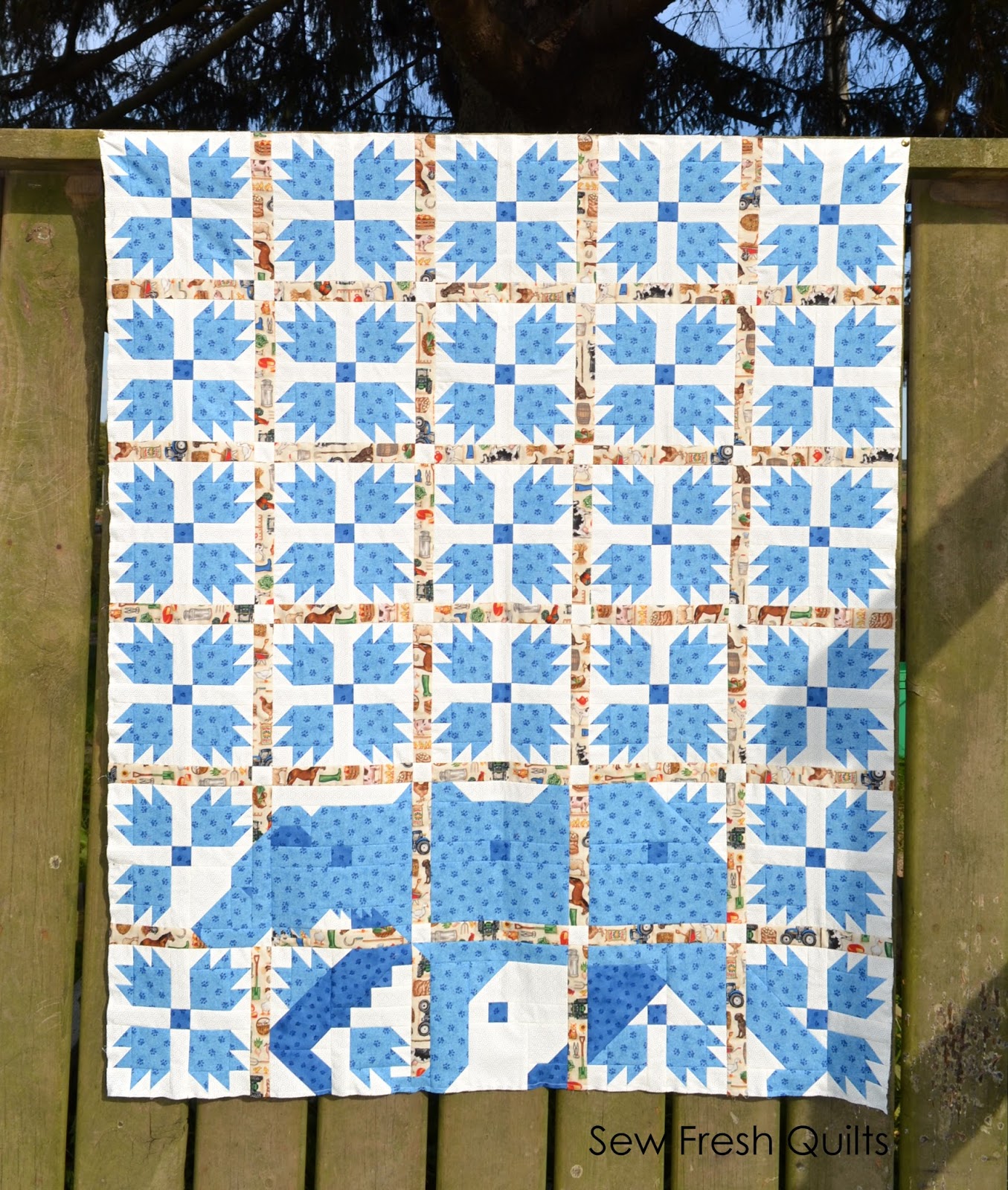 For the FULL quilt, the rows will each contain 9 sets of BEAR PRINT border blocks.