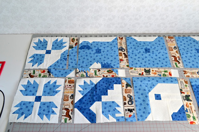 For the LAP quilt, the rows will each contain 7 sets of BEAR PRINT border blocks.