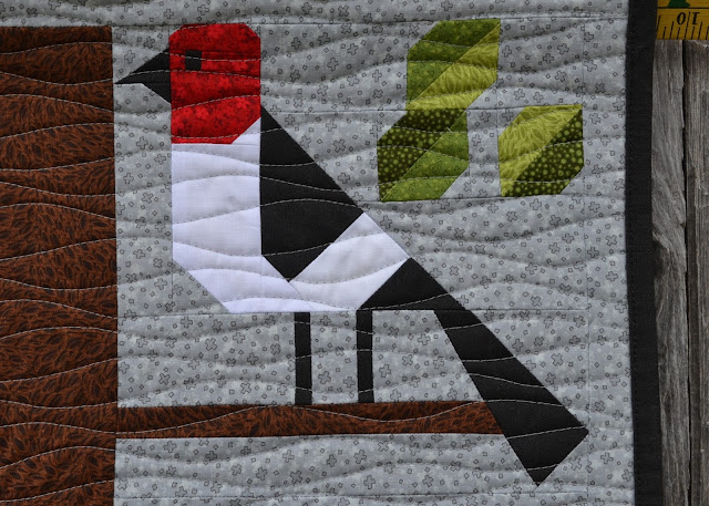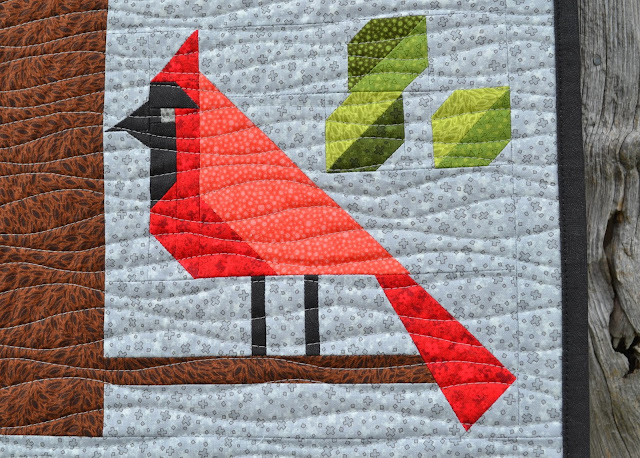 Just like when I made the Forest Friends 2.0 quilt, all of the fabrics used in this project are from the new Hopscotch collection by Jamie Fingal for RJR Fabrics. And I especially love the Crosshatch My Way print used for the Blue Jay. And how all the prints are "reads like a solid". I've told you before - I do love to use solids - so even though these are prints, they make me feel like I'm cheating to say, "All the fabrics used in this piece are prints."