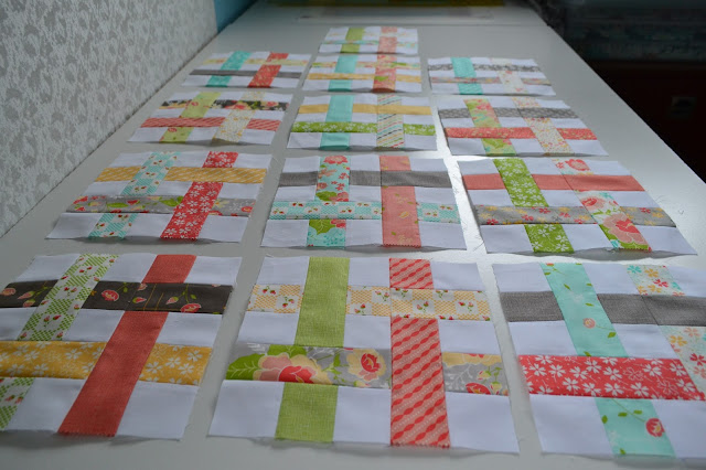 The blocks were super easy to make. And I love how each one shows off these fabrics from the Lulu Lane collection by Corey Yoder. The blocks remind me of a hashtag! So fun!
