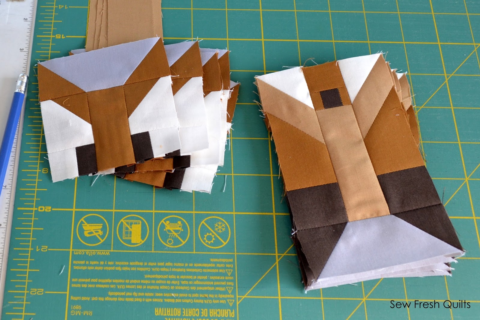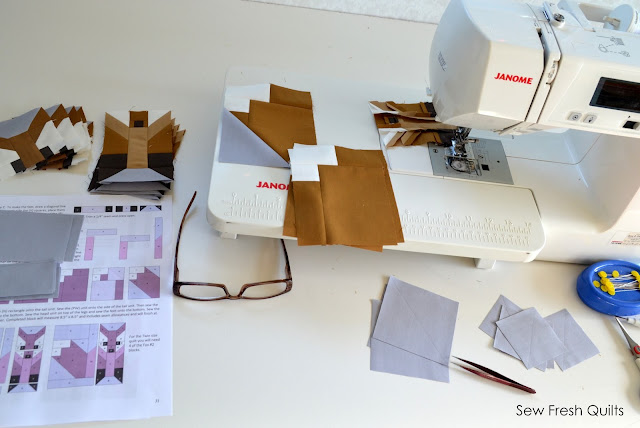 Forest Friends is a sampler style design with a woodland theme and features animal quilt blocks made using traditional piecing methods. No templates. No paper piecing. Only simple straight line sewing and diagonal seams. Easy to follow instructions are provided for every step of the way! The Forest Friends pattern includes material requirements lists for both the TWIN and BABY size settings and charts for each quilt block, to make either a single block or a set of four blocks at once.
