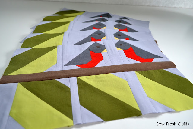 I loved working with the cotton couture and could not get over how soft those cottons are! And the Aviary backing? Gorgeous! Loved how well it blended in with the choices from the front and added a beautiful brightness to contrast with the woodsy feel of the front of the quilt. I am just so happy with these finishes!