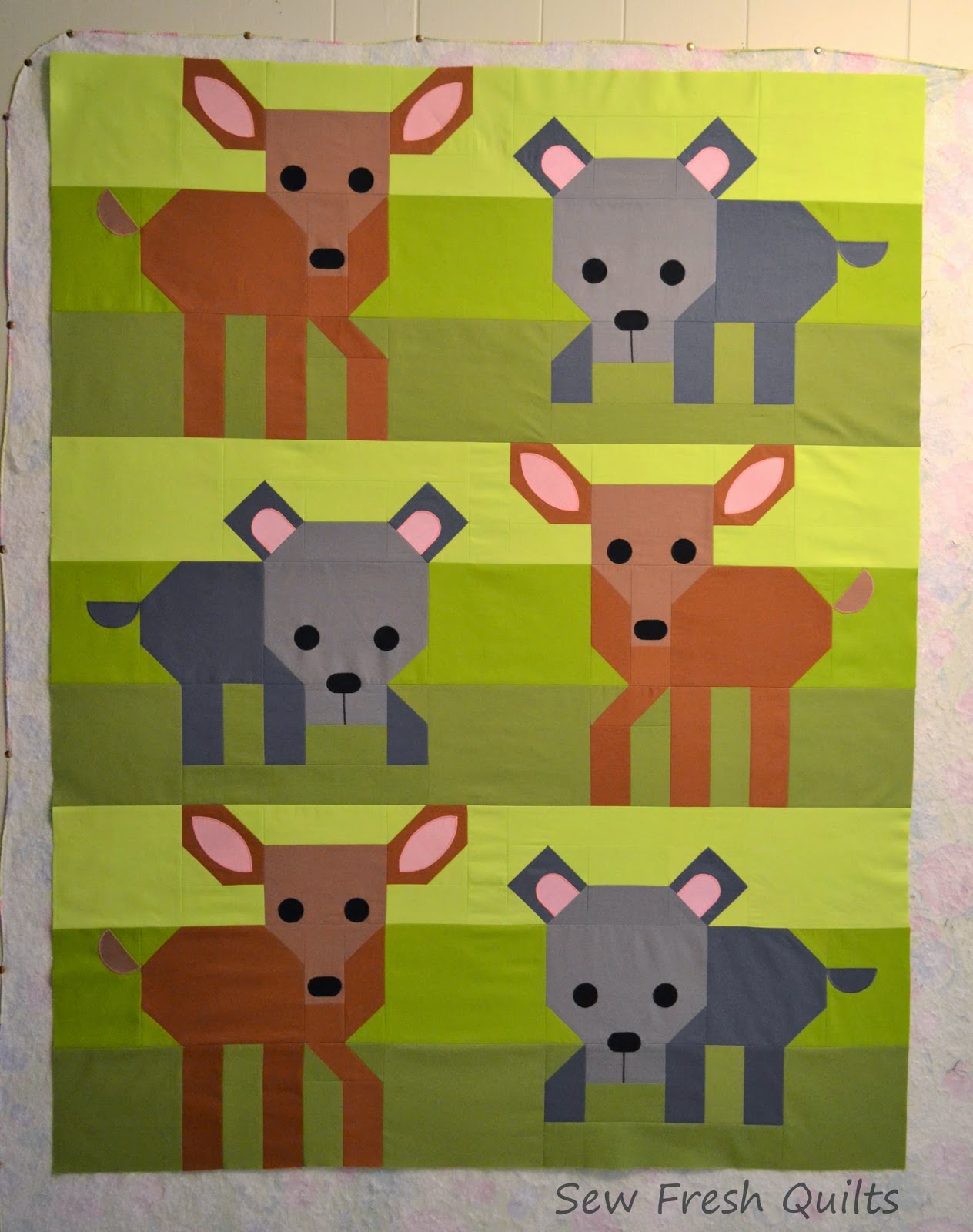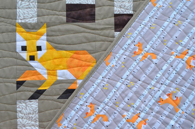 The "Fox among the Birches" baby quilt finished at 38" x 45"
