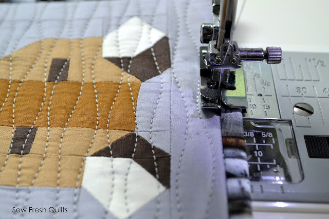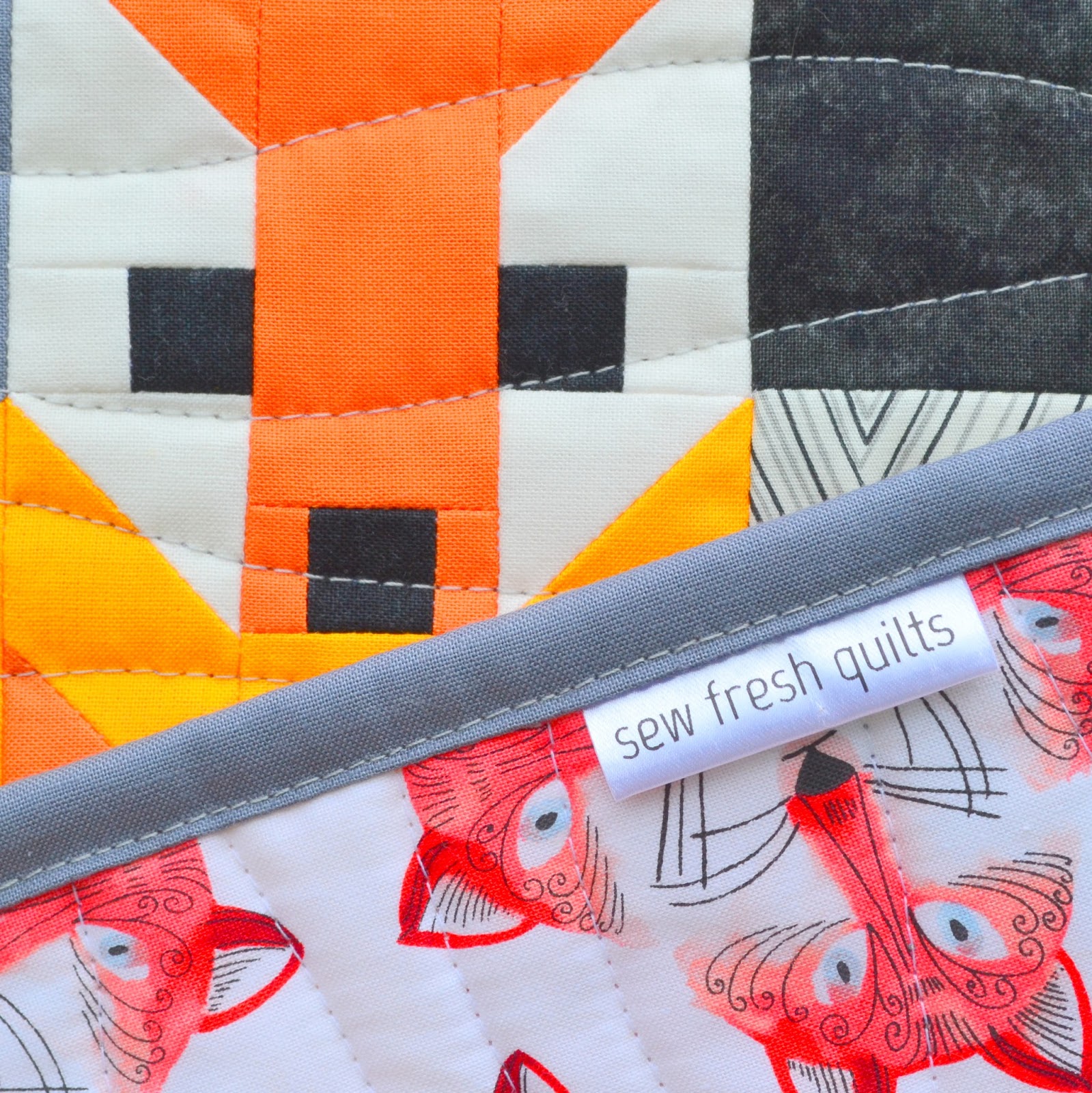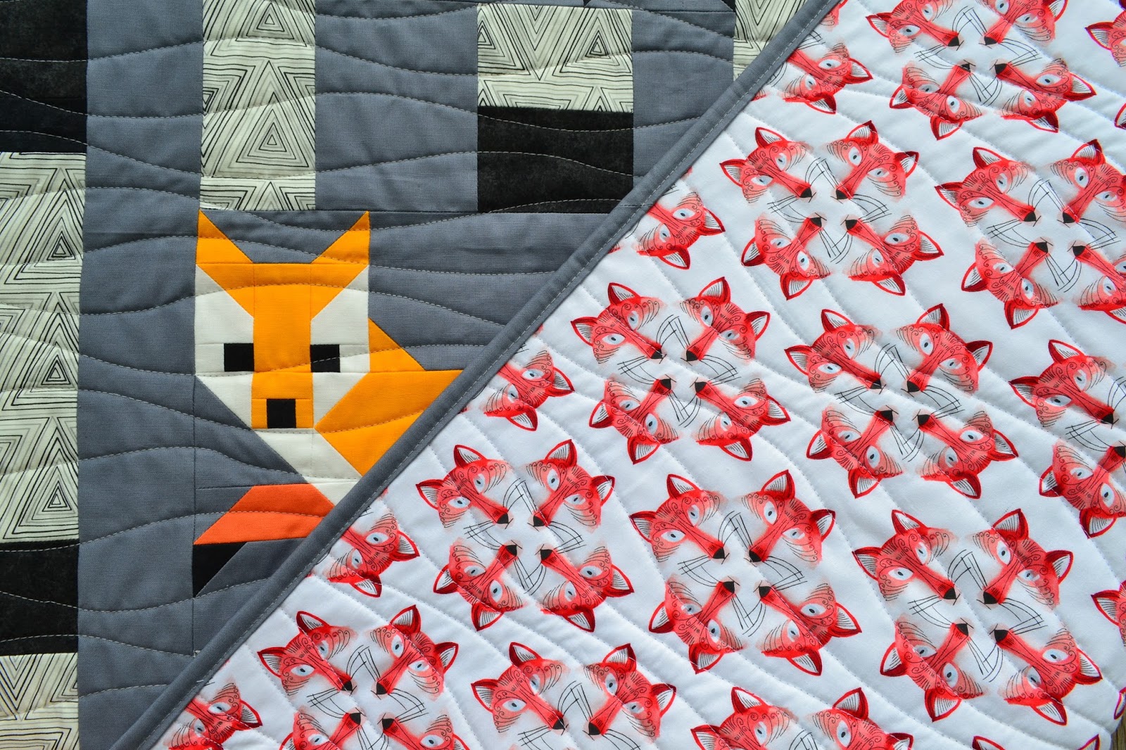 The backing is a new stash addition (my first one this year!) from Bobbie Lou's Fabric Factory and is called Out Foxed by Michael Miller Fabrics.