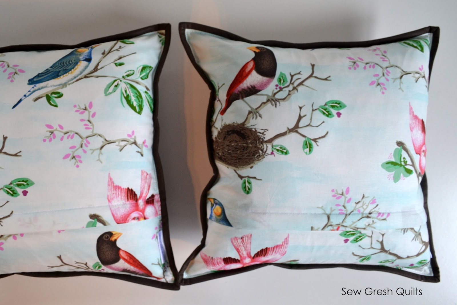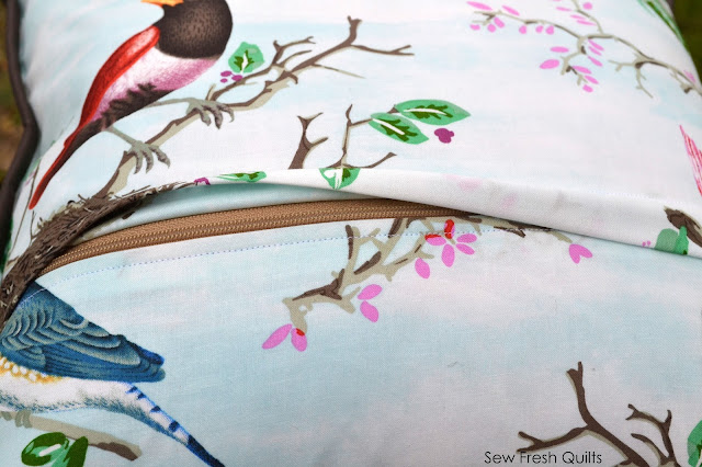 I used a dark grey thread on top and plain white Gutermann thread in the bobbin. And I love how well it has blended in with the background and yet remained rather subtle across the orange foxes.