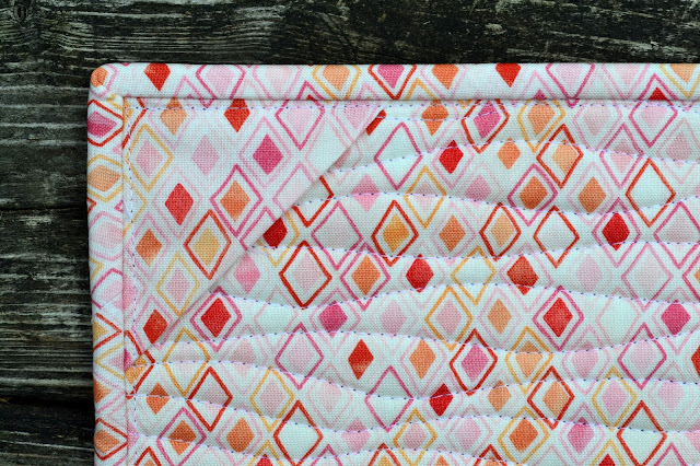 I used a medium grey thread both on top and in the bobbin to quilt those organic wavy lines. But then used black thread for attaching and finishing the binding.