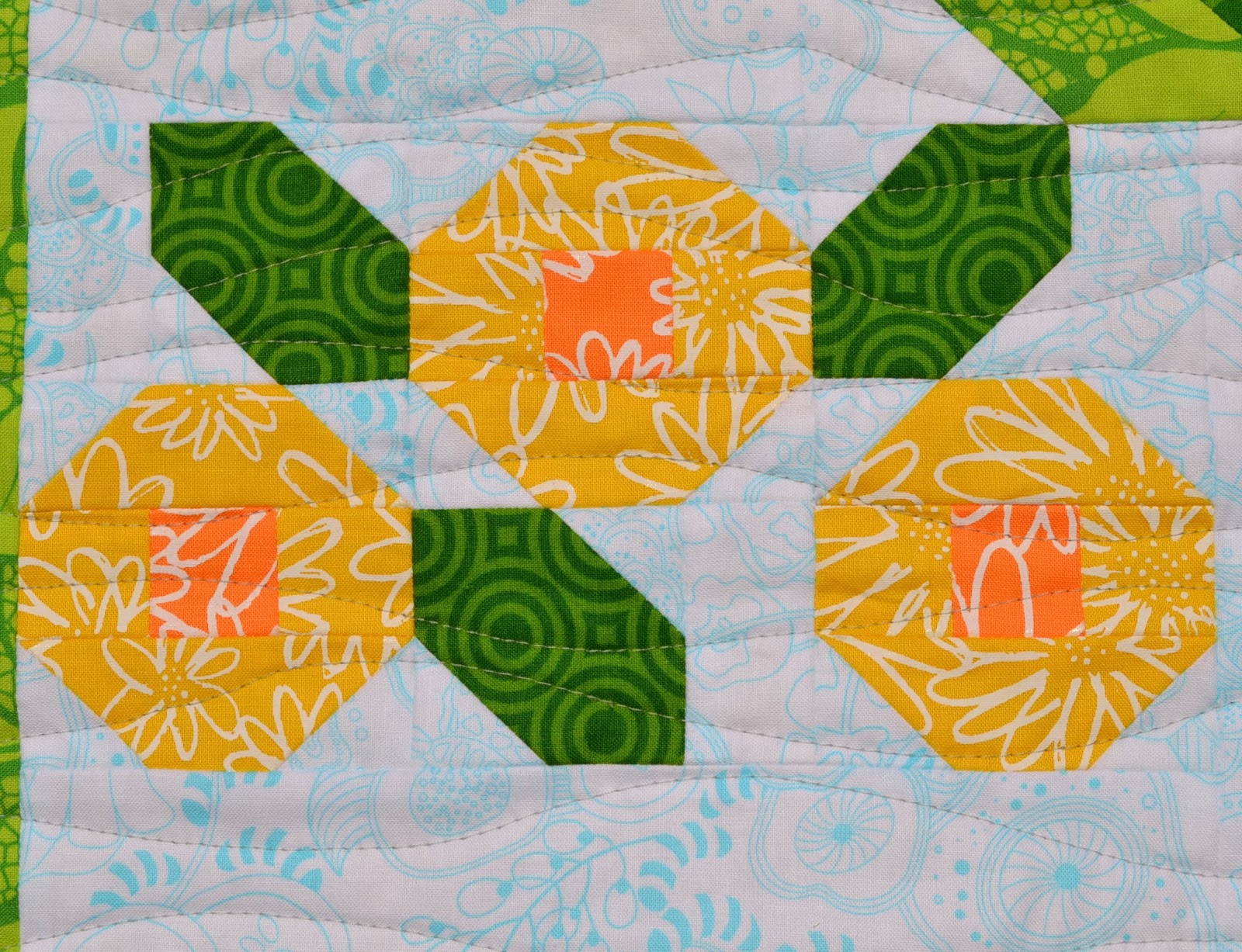 The Daisy Days collection made it easy for me. You know how much I have been challenging myself to use more prints in my quilts. This collection has a wonderful selection of colours and different types of prints.