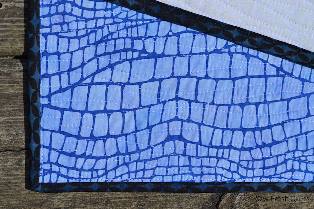 The backing is Makin' Waves in Ink from the True Colors collection by Tula Pink for Free Spirit Fabrics, which you can view here. The boldness of this print is a great contrast to the front.