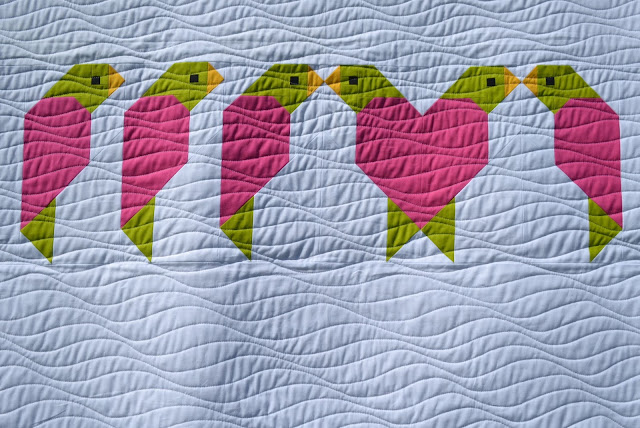 I know that I have been using prints a lot more lately. I am trying to challenge myself to go out of my solids comfort zone. But for this one.... I could not resist digging back into my stash of solids to make this graphic lineup of love birds.