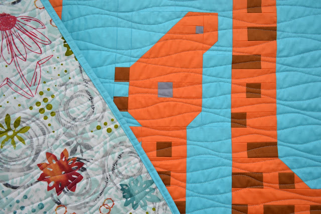 Can you see that? It's some more wavy line quilting. I really enjoyed quilting this quilt. I was really getting in the groove with those curvy lines! The quilting was done using Light Grey Omni from Superior Threads, on top and plain white Gutermann thread in the bobbin for the back.