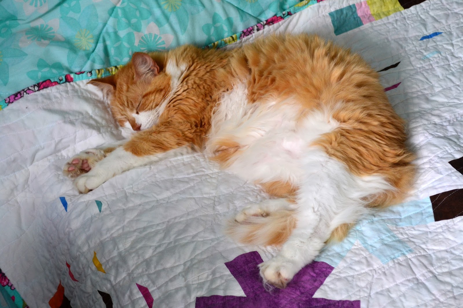 The backing is a new stash addition (my first one this year!) from Bobbie Lou's Fabric Factory and is called Out Foxed by Michael Miller Fabrics.